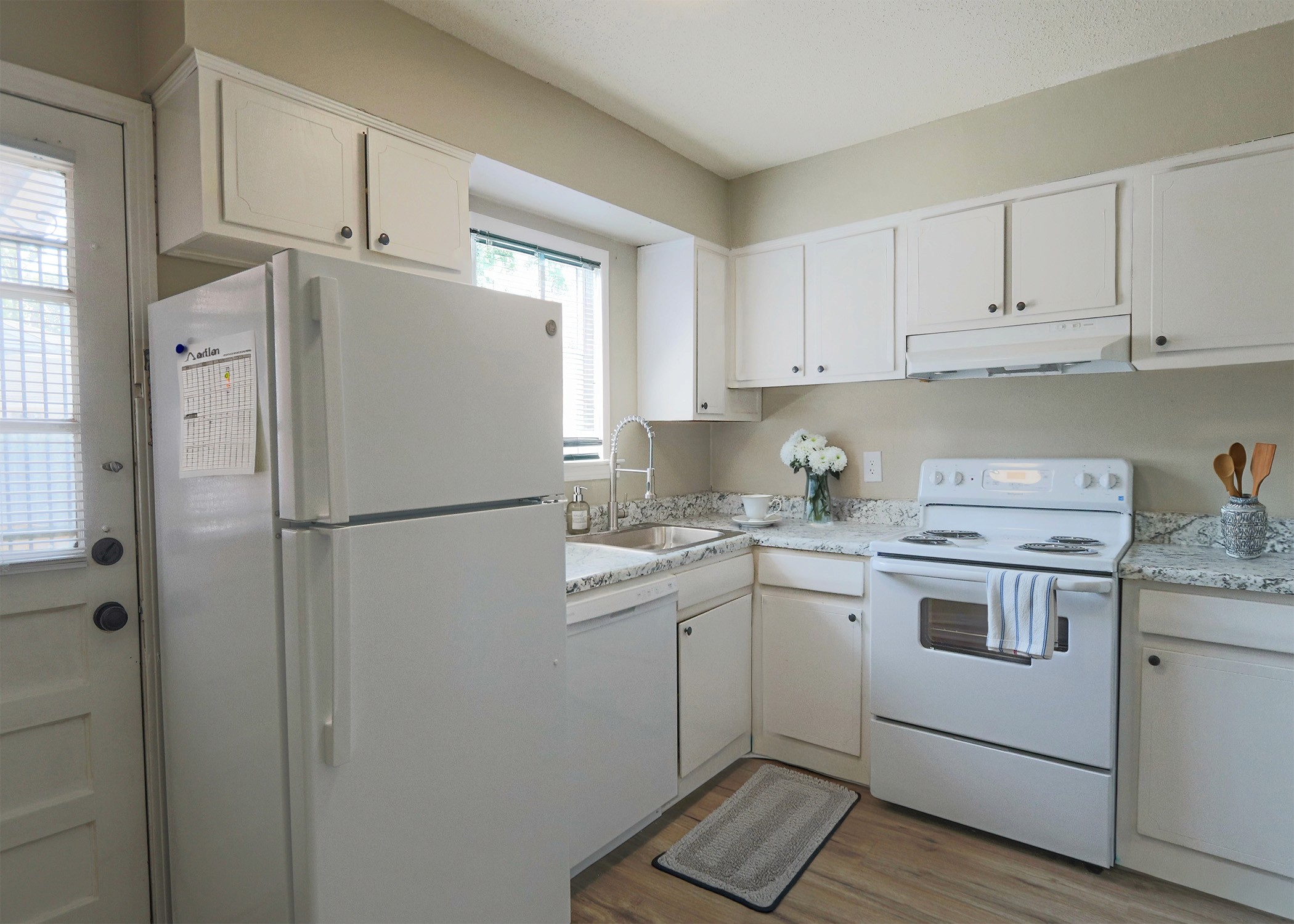 The Midline offers the comfort and convenience of private off-street parking, complimentary on-site laundry, central AC and heat, and an in-unit dishwasher. Residents are welcomed through a charming arched brick entry with decorative stained-glass details, leading into a courtyard-style community with classic wrought-iron railings and open walkways. Located in the heart of Midtown, it’s a warm, character-filled place to call home with easy access to everything you love nearby.